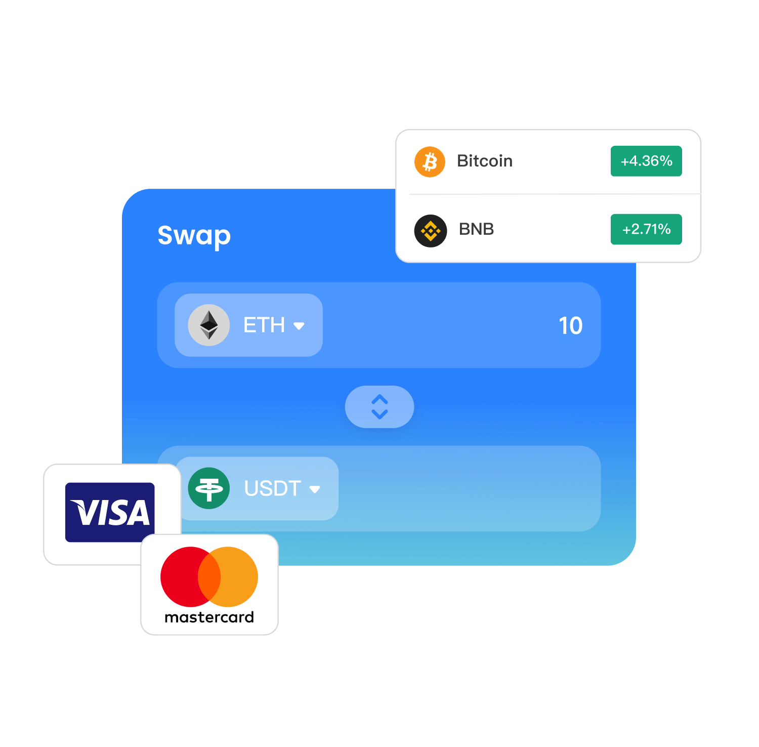 使用您的信用卡即可轻松购买数字资产,全程安全、便捷。支持多种主流加密货币的存储、发送、跨链转账与兑换功能,让资产管理更加智能高效,无论是投资、支付还是跨链交互,都能一站式完成。